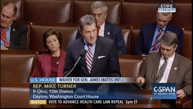 Congressman Turner spoke on the House floor in support of S. 84 - To provide for an exception to a limitation against appointment of persons as Secretary of Defense within seven years of relief from active duty as a regular commissioned officer of the Armed Forces.